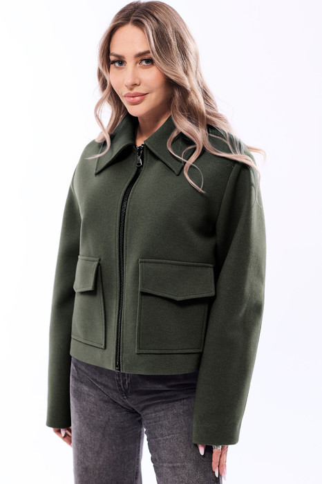 Куртка, с центральной застежкой на молнию , отложным воротником. По переду расположены накладные карманы с клапанами. Рукав втачной. Плечо спущенное. Спинка со средним швом.