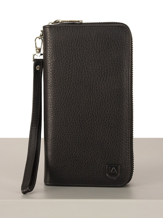 Клатч мужской выполнен из натуральной кожи. Детали: 1 отделение на молнии и 1 отделение на магнитных кнопках, внутри 2 отделения для купюр, отделение для мелочи на молнии, 18 отделений для карт, 1 окошко для проездного, 2 отделения для сим карт, 5 карманов для купюр. Металлическая брендированная фурнитура серебристого цвета. В комплекте фирменная черная коробка.
