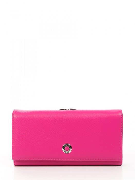 Кошелек женский выполнен из натуральной кожи. Детали: основное отделение на магнитных кнопках, 3 отделения для купюр, 8 отделений для визиток или карт, 1 отделение с прозрачным окошком для карты или проездного, 1 отделение на молнии для купюр или мелочи, 1 отделение на замке фермуар. Фурнитура серебристого цвета. Упаковка: фирменная белая коробка.
