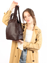 Рюкзак женский выполнен из экокожи. Детали: 2 регулируемые ручки по 102 см. соединяющиеся в одну при помощи молнии, 2 маленькие ручки для держания в руке. Внутри изделия: 1 основное отделение на молнии, 2 открытых кармана, 1 карман для мобильного телефона, 1 карман на молнии. Снаружи изделия: 1 карман на молнии спереди, 1 карман на молнии на оборотной стороне. Брендированная подкладка из хлопка. Металлическая брендированная фурнитура серебристого цвета. В комплекте фирменный пыльник.