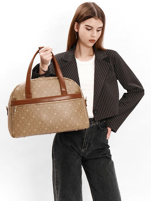 Сумка выполнена из экокожи канва. Детали: 2 ручки по 55см., 1 длинный регулируемый ремень на карабинах.  Внутри изделия: 1 отделение на молнии, 1 карман на молнии, 1 карман открытый. Снаружи изделия: 2 кармана на молнии спереди изделия, 1 карман на молнии сзади изделия. Брендированная подкладка из хлопка. Металлическая брендированная фурнитура золотистого цвета.