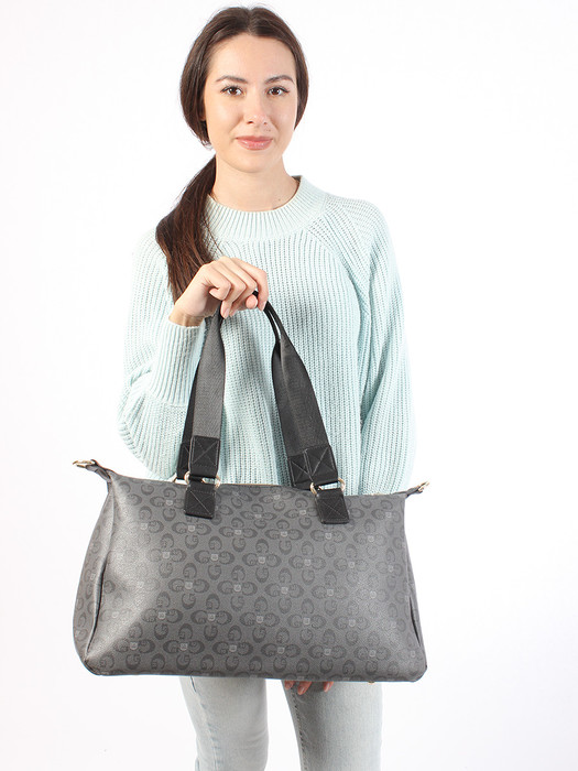 Сумка выполнена из экокожи канва. Детали: 2 ручки по 60см., 1 длинный регулируемый ремень на карабинах.  Внутри изделия: 1 отделение на молнии, 1 карман на молнии, 1 карман открытый. Снаружи изделия: 1 карман на молнии с оборотной стороны изделия. Брендированная подкладка из хлопка. Металлическая брендированная фурнитура золотистого цвета.