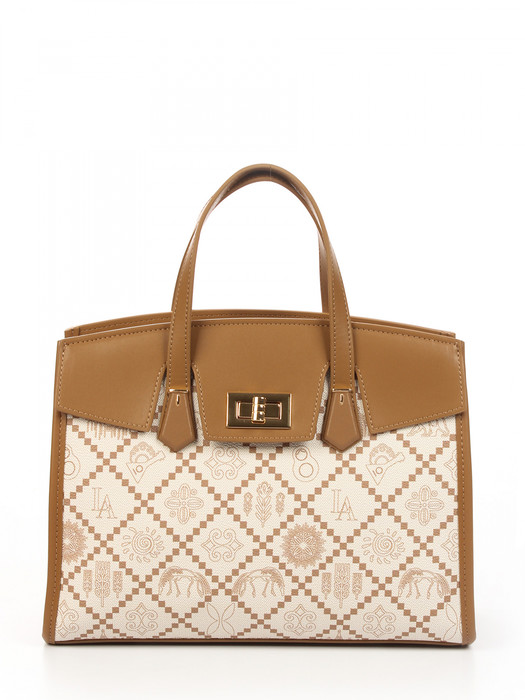 Сумка женская выполнена из экокожи канва. Детали: 2 ручки по 30см. Внутри изделия: 1 отделение на молнии,1 карман на молнии, 1 карман открытый. 1 косметичка на молнии. Брендированная подкладка из хлопка. Металлическая брендированная фурнитура золотистого цвета. В комплекте фирменный пыльник.