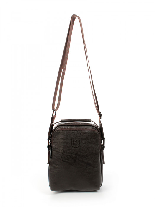 Сумка мужская через плечо выполнена из экокожи. Детали: 1 коротка ручка 25 см, 1 длинная регулируемая ручка 85 см - 155 см. Внутри изделия: 2 отделения на молнии, 1 карман на молнии, 1 открытый карман. Снаружи изделия: 1 карман на молнии на оборотной стороне. Брендированная подкладка из полиэстера. Металлическая фурнитура черного цвета. В комплекте фирменный пыльник.