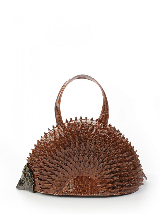 Сумка в виде ёжика выполнена из экокожи. Детали: 2 короткие ручки 35 см, 1 отстегивающаяся ручка от 110 см до 125 см. Внутри изделия: 1 отделение на молнии, 1 карман на молнии, 2 открытых кармана. Брендированная подкладка из хлопка. Металлическая брендированная фурнитура серебристого цвета. В комплекте фирменный пыльник для хранения сумки.