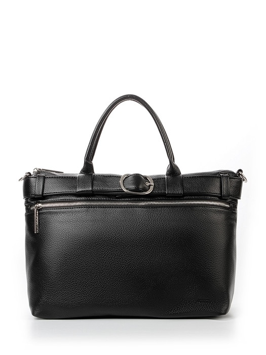 Сумка женская выполнена из экокожи. Детали: 2 короткие ручки по 36 см, 1 длинный ремешок на плечо 130 см. Внутри изделия: 1 отделение на молнии, 1 карман для документов на молнии, 1 открытый карман, 1 карман для мобильного телефона и 1 карман на молнии. Снаружи изделия: 1 карман на оборотной стороне на молнии и 1 большой карман спереди изделия. Брендированная подкладка из хлопка. Металлическая брендированная фурнитура серебристого цвета. В комплекте фирменный пыльник.