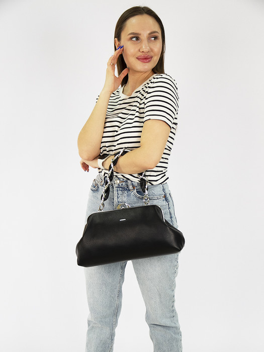 Сумка женская выполнена из экокожи. Детали: 1 съёмная регулируемая ручка 135 см, съёмная цепочка 40см. Внутри изделия: 1 отделение на замке фермуар, 2 кармана на молнии, 2 кармана открытых. Снаружи изделия: 1 карман на оборотной стороне на молнии. Брендированная подкладка из хлопка. Металлическая брендированная фурнитура серебристого цвета. В комплекте фирменный пыльник.