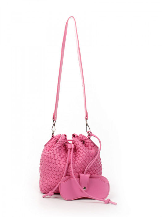 Сумка плетеная выполнена из экокожи. Детали: 1 ручка 70 см, 1 регулируемая ручка от 110 см до 125 см. Сумка имеет 1 отделение, закрываемое на стяжку. Металлическая брендированная фурнитура серебристого цвета. В комплекте фирменный пыльник для хранения сумки, чехол для очков, косметичка. Внутри косметички: 1 отделение на молнии, 1 карман на молнии, 1 открытый карман. Особенности косметички: брендированная подкладка из хлопка, брендированная фурнитура серебристого цвета.