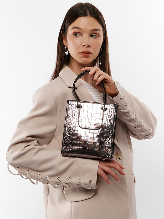 Сумка женская выполнена из экокожи. Детали: 2 короткие регулируемые ручки по 35 см. и 2 металлические короткие ручки, 1 длинный регулируемый ремешок на плечо 120 см. Внутри изделия: 1 отделение на магнитной кнопке, 1 карман для документов на молнии, 1 открытый карман. Брендированная подкладка из хлопка. Металлическая брендированная фурнитура серебристого цвета. В комплекте фирменный пыльник.
