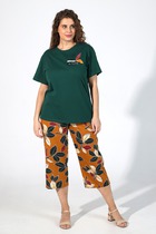 Элегантный женский комплект - двойка: блузон, брюки.Блузон прямого силуэта с разрезами по боковым швам.Застёжка - отрезная планка с петлями и пуговицами. Воротник рубашечный на отрезной стойке.По переду вставка из отделочного материала. По спинке кокетка и талевые вытачки.Брюки классические, зауженные к низу, с нормальной высотой сидения, комфортной посадки, на обтачке.Длина блузона по спинке 84 см. Длина рукава - 25 см. Длина брюк по боковому шву 102 см.