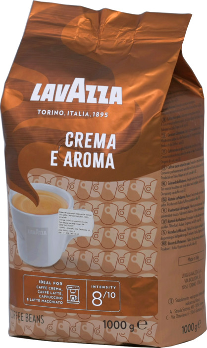 Натуральный зерновой кофе. Состав: смесь сортов арабики и робусты.Crema & Aroma - это гармоничная смесь тщательно отобранных зерен арабики и робусты. Стойкая кремовая текстура делает этот кофе идеальным для приготовления латте, латте макиато, капучино. Отличается ярким сливочным ароматом и вкусом с шоколадными нотами и густой пенкой.Степень обжарки —средняя. Интенсивность — 8 из 10.