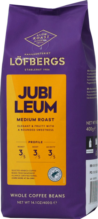 Натуральный зерновой кофе. Состав: 100% арабика.Jubileum — это кофе средней обжарки с фруктовыми ароматами, которые придают округлую сладость и длительное послевкусие. В этом купаже используется 100% арабика из Бразилии, Центральной Америки и Восточной Африки.