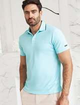 Лонгслив-поло из однотонного хлопкового полотна с добавлением лайкры. Втачной рукав на манжете, воротник на отрезной стойке с застежкой на три пуговицы.