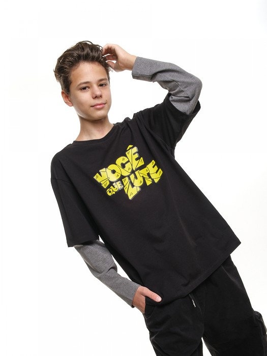 Совместные покупки Нижневартовск Детская одежда Футболки, майки — Mini Maxi Лонгслив с принтом (128-146см) 22-0229-2(3) черный/серый