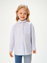 Блузка свободного силуэта. Рукава длинные втачные, с двумя швами. Горловина круглой формы с воротником из поплина. . Сзади изделия застежка - «капелька» на пуговицу d=10mm, петлю жилка вязаная 4 мм,жилка 13797K,KT1-4 . Низ рукавов и изделия обработаны на 2-х игольной плоскошовной машине швом в подгибку.
