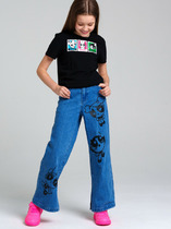 Брюки для девочек, прямого силуэта. Пояс цельнокроеный с втачной эластичной тесьмой RV40. Пояс прострочен двумя отделочными строчками. По переду обработаны карманы в швах. Низ брюк обработан швом в подгибку на двухигольной плоскошовной машине.
