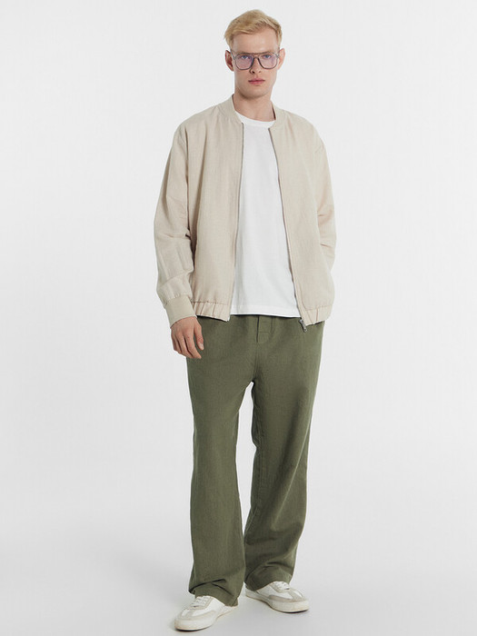 Брюки прямые, посадка средняя. Пояс отрезной с эластичной тесьмой внутри. По переду пробиты петли и втянут шнур-бейка из основного полотна с застроченными концами. В боковых швах обработаны карманы. По переду обработан гульфик с супатной застежкой на петли и пуговицы. На задней правой половинке накладной карман. Нижние срезы брюк обработаны швом вподгибку.