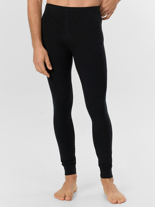 Комфортные мужские брюки из термо-материала. Силуэт облегающий по всей длине. Модель  без боковых швов, с мягкой эластичной тесьмой в поясе и плоскими швами. Специальное трикотажное полотно, состоящее из натурального бамбукового волокна, шерсти и эластана, дарит изделию особые гигиенические и термические свойства. Незаменимая деталь гардероба для прохладного времени года, охоты и рыбалки, активного отдыха и спорта. Рекомендуемый температурный режим: от +5 до -20 градусов Цельсия.