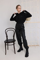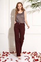 Брюки женские прямого силуэта из трикотажного полотна интерлок. Пояс цельнокроенный на жаккардовой эластичной тесьме.