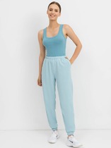 Пояс цельнокроенный, узкий с эластичной тесьмой внутри. В поясе пробиты петли и вставлен шнур. В боковых швах обработаны карманы, с подкладкой из кулирки, и по боковым швам накладные карманы с клапаном.