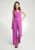 Женские брюки свободного силуэта — идеальный выбор для тех, кто ценит комфорт и натуральные материалы. Рами и лиоцелл делают ткань прочной, дышащей и приятной к телу, обеспечивая легкость и удобство даже в жаркую погоду. Практичный эластичный пояс со шнуром из основного полотна позволяет регулировать посадку, а боковые карманы добавляют функциональность. Широкие манжеты на нижних срезах придают брюкам стильный акцент, делая их универсальными для разных образов. Дополните эти брюки подходящим верхом из коллекции Mark Formelle, чтобы создать гармоничный и стильный комплект.
