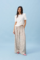 Вертикальные контрастные лампасы визуально вытягивают силуэт и добавляют образу динамики. Средняя посадка и эластичный пояс со шнуром позволяют регулировать посадку по фигуре, а боковые карманы с нежной подкладкой заботятся о вашем удобстве.