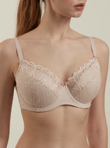 Бюстгальтер женский с мягкими чашками, выполнен из кружевного полотна. Чашка цельнокроеная с деталью спинки, без вытачки и дополнительных членений.  Верхний срез чашки обработан эластичной  тесьмой с зубом. Проймы, нижний срез стана и срез застежки обработаны жесткой тесьмой без зуба. Застежка спереди на два съемных крючка. Бретель регулируемая. Кольца-регуляторы в цвет бретели.