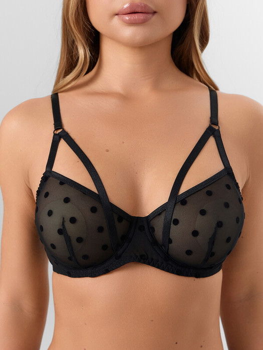 Бюстгальтер женский с мягкими чашками, на каркаса, выполнен из эластичной сетки. Чашка с вытачкой. Верхний срез чашки обработан ловаблем. Чашка декорирована протяжкой из декоративной эластичной тесьмы. Протяжка с бретелью крепится через кольцо.