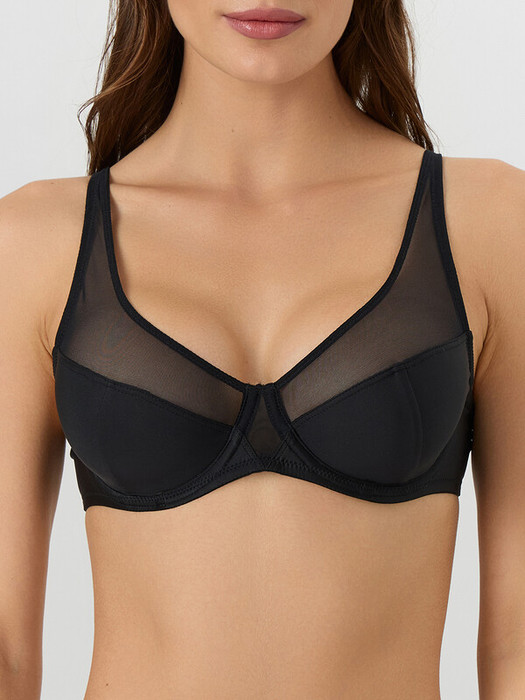 Бюстгальтер с мягкой чашкой из микрофибры с отделкой эластичной сеткой, каркас 47 тип. Чашки с тройным членением: верхняя деталь из сетки, нижние-из микрофибры, на подкладке из эластичной сетки. Верхний срез чашки обработан эластичной тесьмой.