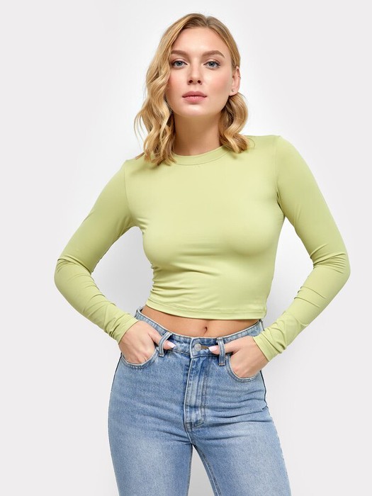 Укороченный женский джемпер прилегающего силуэта из трикотажного полотна. Вырез классический – круглый, не глубокий. Рукава длинные. Отличная база для ваших стильных образов!