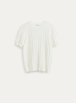 Джемпер изготовлен из трикотажного полотна кулирка. Джемпер облегающего силуэта длиной выше линии бедер. Горловина округлой формы. Горловина по спинке обработана обтачкой.