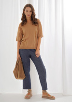 Джемпер из трикотажной хлопковой рибаны. Силуэт полуприталенный, длина до середины бедра. Втачной длинный рукав на манжетах. Горловина круглой формы. Спереди сверху застегивается на несколько пуговиц. Очаровательно и уютно!
