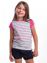 Модная футболка для девочек, выполненная из хлопковой трикотажной кулирки. Силуэт прямой. Перед и спинка без швов и рельефов. Рукава короткие, вырез классический – круглый, не глубокий. Стильная футболка с ярким дизайном!