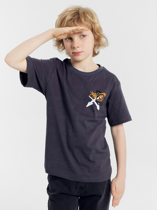 Футболка верхняя прямого силуэта. Перед и спинка цельнокроенные. Рукава втачные короткие. Линия плеча спущена. Горловина круглой формы, обтачка из трикотажного полотна рибаны 1*1. Шов втачивания рибаны по спинке закрыт бейкой из основного полотна. Низ футболки и рукавов обработан на 2-х игольной плоскошовной машине швом в подгибку.