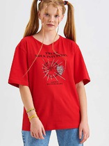 Футболка свободного силуэта. Перед и спинка цельнокроенные. Длина до середины бедра. Рукав втачной, короткий, линия плеча спущена. Горловина круглой формы, обтачка из трикотажного полотна рибаны 2*2. Низ изделия и рукваов обработан на 2-х игольной плоскошовной машине швом в подгибку.