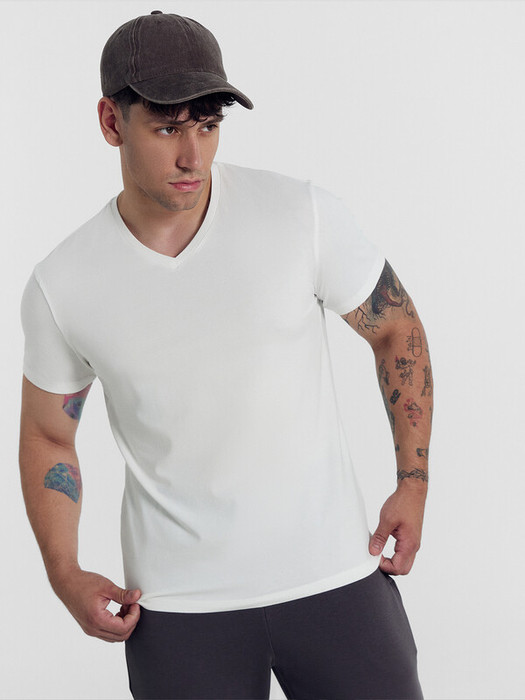 Футболка из трикотажной кулирки прямого силуэта. Длина до середины бедра. Горловина с V-образным вырезом. Рукава короткие. Отличный выбор!