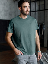 Футболка свободного силуэта. Перед и спинка цельнокроеные. Горловина круглой формы. Обтачка горловины из рибаны 1*1. По горловине проложена отделочная строчка. Горловина спинки закрыта тесьмой из основного полотна. Плечо спущено, пройма углублена. Рукав втачной, длина рукава чуть выше локтя.