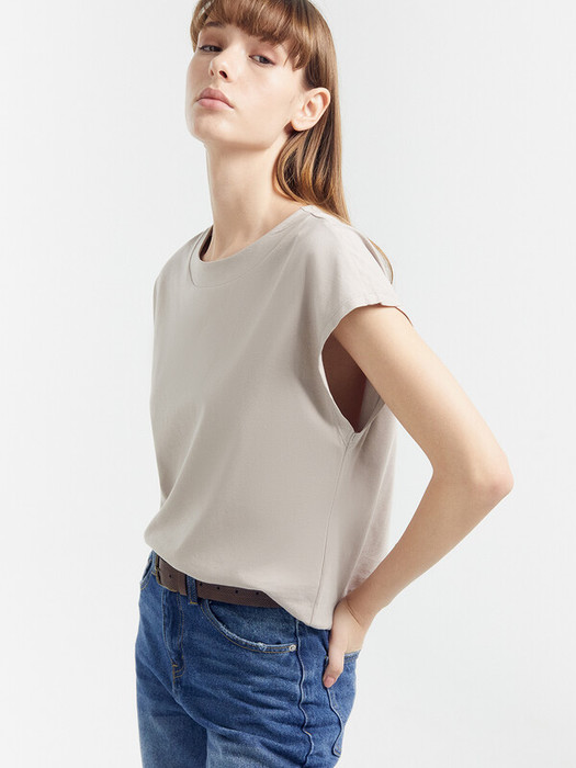 Спущенное плечо, углубленная пройма. Проймы обработаны узким швом вподгибку с плоскошовной строчкой. Низ изделия  обработан широким швом вподгибку.