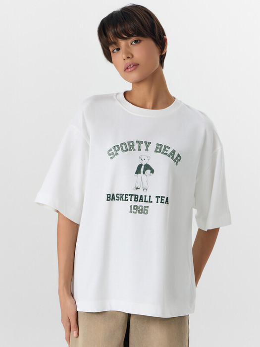 Горловина округлой формы обработана обтачкой из рибаны. Шов втачивания обтачки по спинке закрыт окантован поперечной бейкой из основного полотна. Рукава втачные, короткие. Линия плеча спущена. Нижние срезы футболки и рукавов обработаны швом вподгибку.
