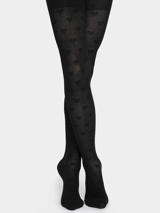 Рис.1660 Гладкие колготки с рисунком в виде сердечек сетки по всей колготке.