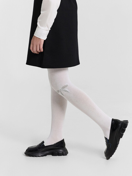 Рис.3218 Гладкие колготки с рисунком в виде блестящего бантика, рисунок образован с использованием люрексовой нити.