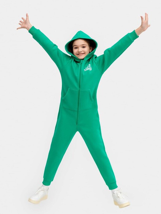 Детский комбинезон из трикотажного футера с теплым подчесом. Комбинезон свободной формы, застегивается на молнию. Верхняя часть – в виде худи с капюшоном и карманом-кенгуру, нижняя часть – свободные брюки на манжетах. Спущенная линия плеча и углубленная пройма гарантируют особый комфорт. Отличный выбор!