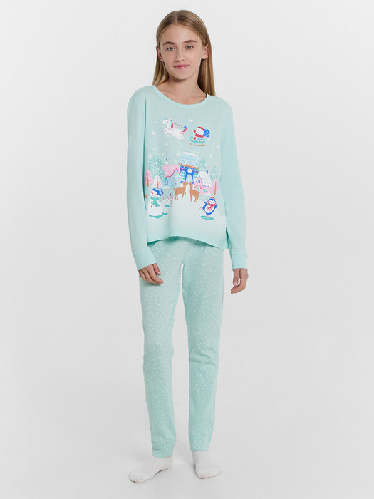 Уютная хлопковая пижама для девочки. Широкие эластичные манжеты на рукавах лонгслива и штанинах брюк. Интересный симпатичный дизайн. Продуманная конструкция. Идеальный вариант для приятного сна и расслабленного отдыха
