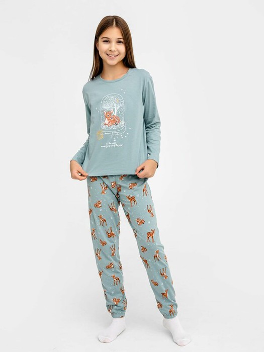 Комплект для девочек состоит из джемпера и брюк.