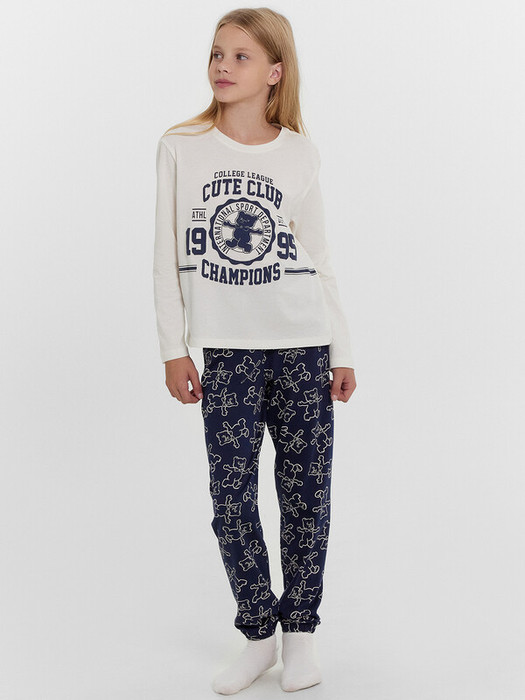 Комплект для девочек состоит из джемпера и брюк.