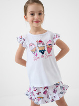 Комплект для девочек состоит из футболки и шорт.