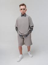 Комплект состоит из топа и шорт. Топ А-силуэта. Перед и спинка цельнокроеные. Круглый вырез горловины. Обтачка горловины и пройм из основного полотна. Низ топа обработан швом в подгибку сзакрытым срезом.