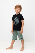 Пижама для мальчиков - это отличный комплект для сна и отдыха. Футболка имеет круглую горловину и короткие рукава, обеспечивающие комфорт и свободу движений. Шорты длиной до колен оснащены эластичной тесьмой в поясе для надежной посадки. Модель выполнена из хлопковой кулирки - натурального материала, который обладает отличной воздухопроницаемостью и мягкостью. Благодаря этим свойствам, такая пижама идеально подходит для сна и отдыха, создавая уют и комфорт в любое время года.