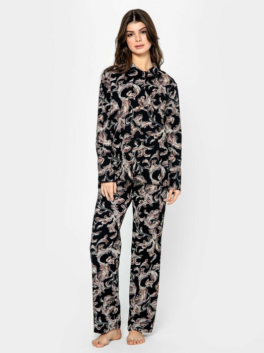 Совместные покупки Нижневартовск Женская одежда Пижамы, халаты — Mark Formelle КОМПЛЕКТ ЖЕНСКИЙ (БЛУЗКА, БРЮКИ) 592462 592462 узоры на черном 105