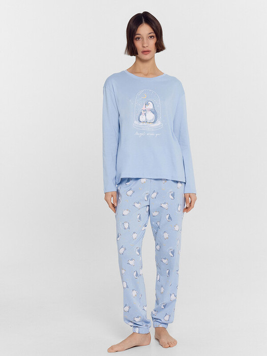 Совместные покупки Нижневартовск Женская одежда Пижамы, халаты — Mark Formelle КОМПЛЕКТ ЖЕНСКИЙ (ДЖЕМПЕР, БРЮКИ) 592510 592510 голубой +пингвины